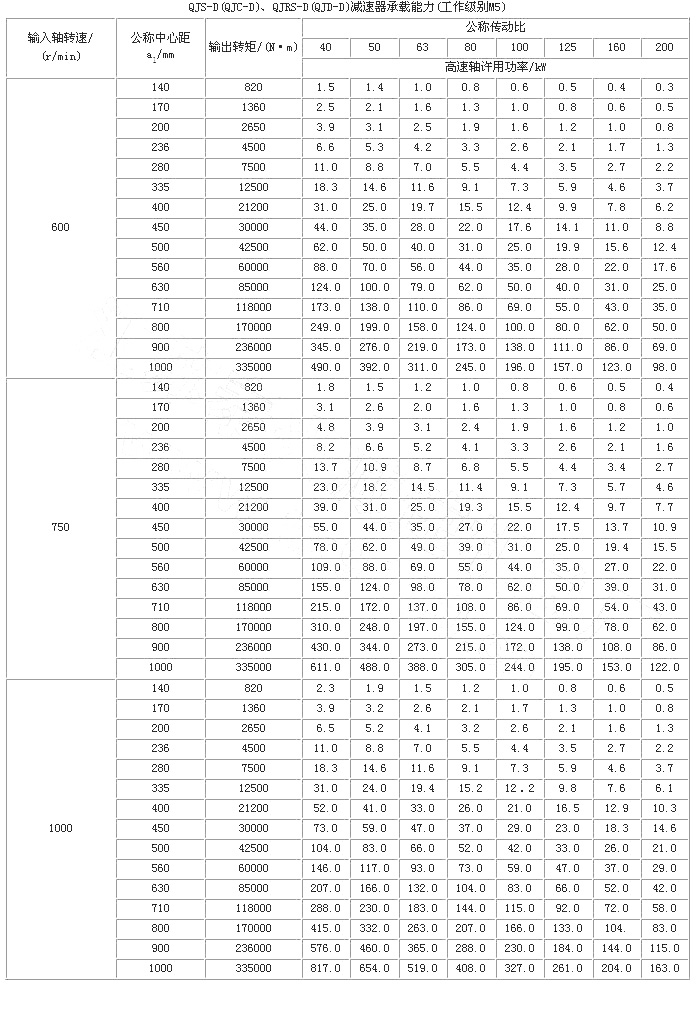 起重機底座式減速器是在三支點減速器的基礎上派生出來的。因此QJ-D型減速器的工作條件、主要技術參數、承載能力和輸出軸端最大允許徑向載荷與三支點減速器相同,其它有所不同。