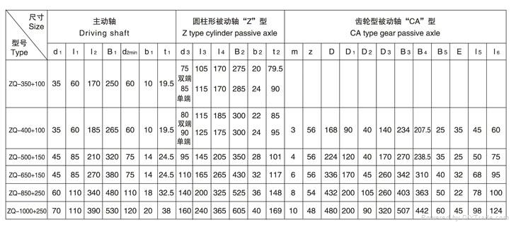 ZQ1000+250大速比齒輪減速機(jī)重約為2189kg,高速軸直徑為70,出軸長(zhǎng)度為110,主軸直徑為160,出軸型式有:圓柱形被動(dòng)軸端,CA齒輪形被動(dòng)軸端。有九種裝配型式。