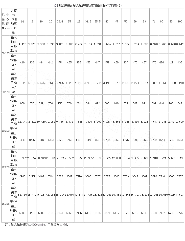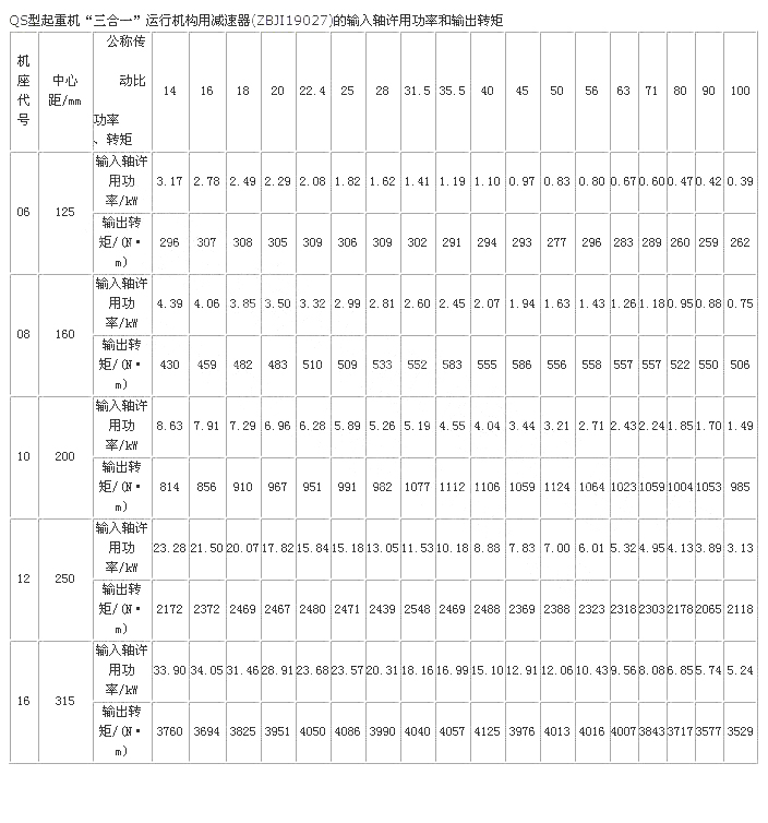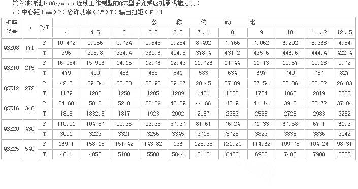 輸入軸許用功率和輸出轉(zhuǎn)矩