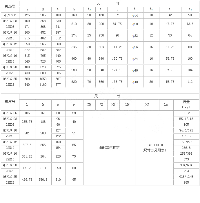 QS、QSE、LG型