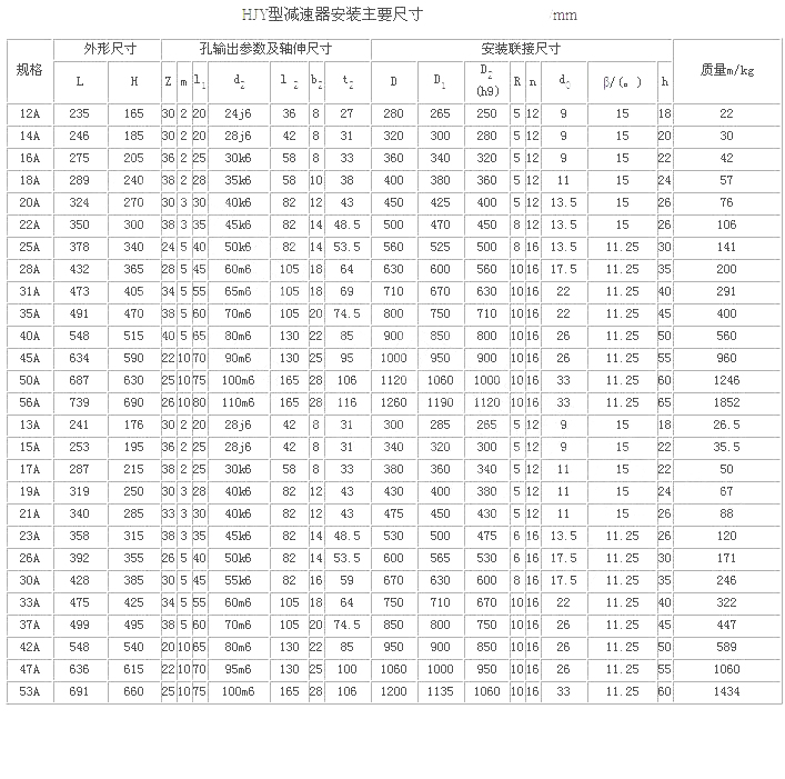 H型星輪減速器(JB/T 8712—1998)代替原混合少齒差星輪減速器(ZBJ 19006—1988)屬少齒差漸開線行星齒輪傳動,具有體積小,承載能力高,傳動比寬、密,效率高,壽命長,傳動平穩(wěn),允許高速輸入等特點。采用單元化結構,以行星齒輪、內(nèi)齒輪、滾動星輪、偏心套和行星架組合的主要單元,代號H;用擴大傳動比的附加單元代號N;用來改變輸入方向的附加單元代號Z。同一種機座號可采用4種承載能力單元結構,因而在產(chǎn)品型號后面附注A、B、C、D4個承載能力代號,即輕型、中型、重型、超重型。適用于冶金、礦山、電力 、起重、運輸、橡膠、水泥、造紙、制糖、鍋爐、建筑等領域,為通用型減速器。