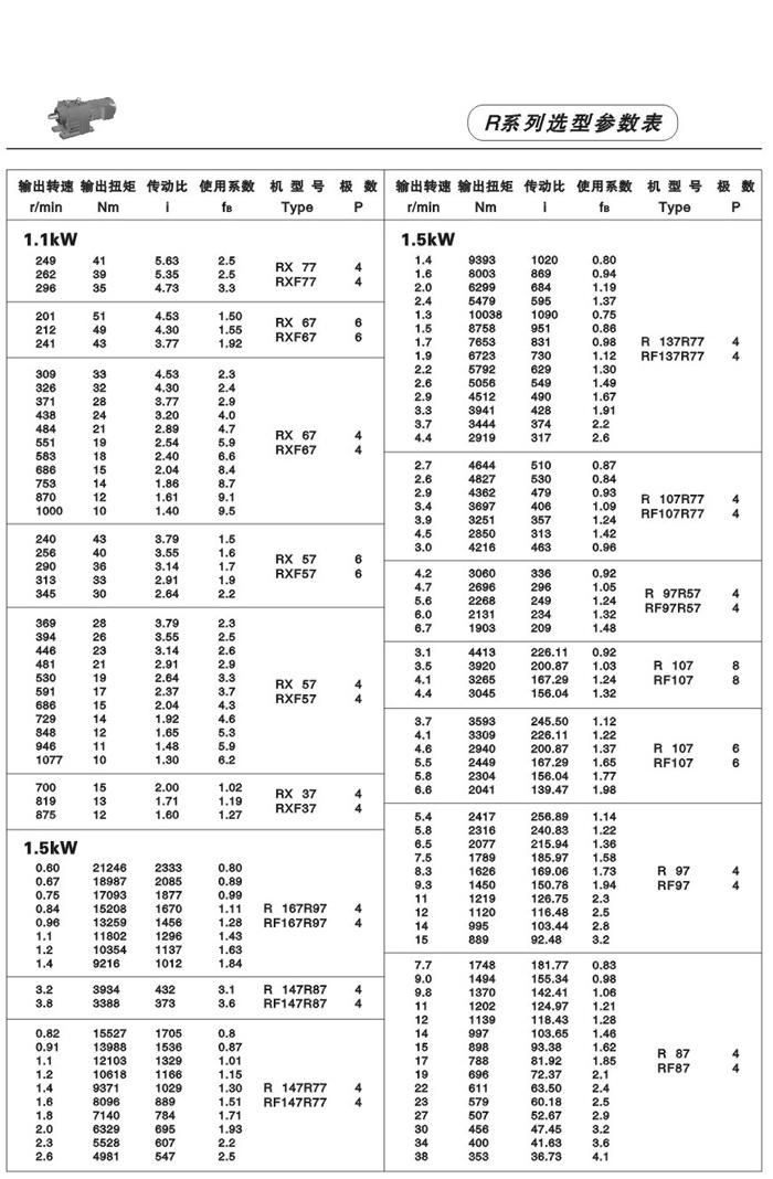 性能、特點: R系列斜齒輪減速機,結合國際技術要求制造,具有很高的科技含量,節(jié)省空間,可靠耐用,承受過載能b高,功率可達132Kw,能耗低,性能優(yōu)越,減速機效率高達95%以上,振動小,噪音低,節(jié)能高,選用優(yōu)質鍛鋼材料,鋼性鑄鐵箱體,齒輪表面經過滲碳淬火,經過精密加工,確保軸平衡度和定位軸承要求,形成齒輪轉動總成的減速機,配合各類電機組成機電一體化,完全保證了產品的質量。